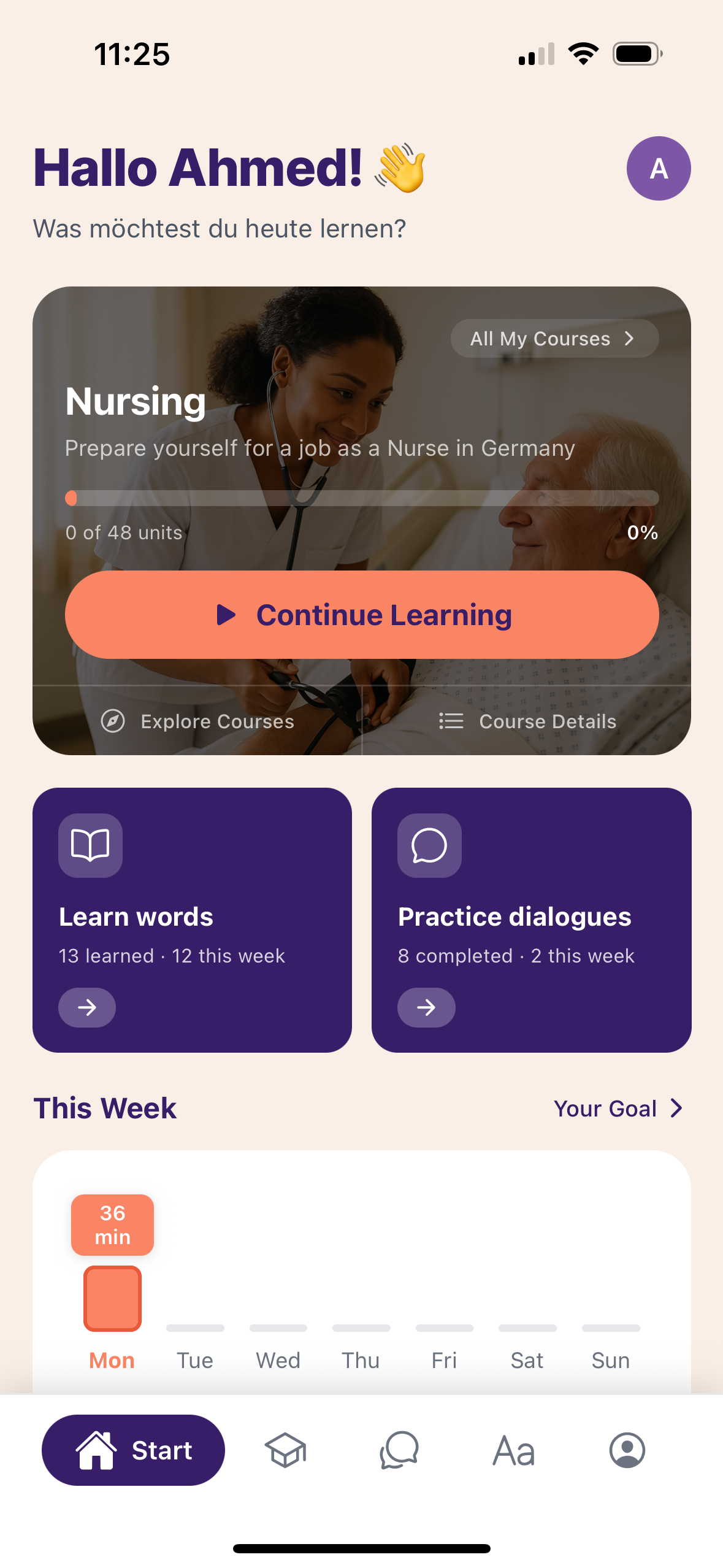 Starte deine erste Lektion und sprich vom ersten Tag an Deutsch – mit KI-Unterstützung.